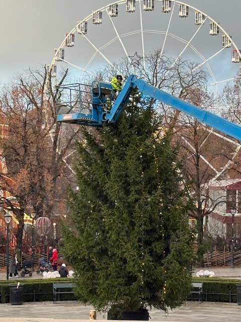 Og ikke minst, hvis vi legger godviljen til, kan bokstaven A minne oss om formen på et grantre, bare se på eksempelet under fra pynting av juletre på Eidsvolls plass utenfor Stortinget fredag 28. november 2025.